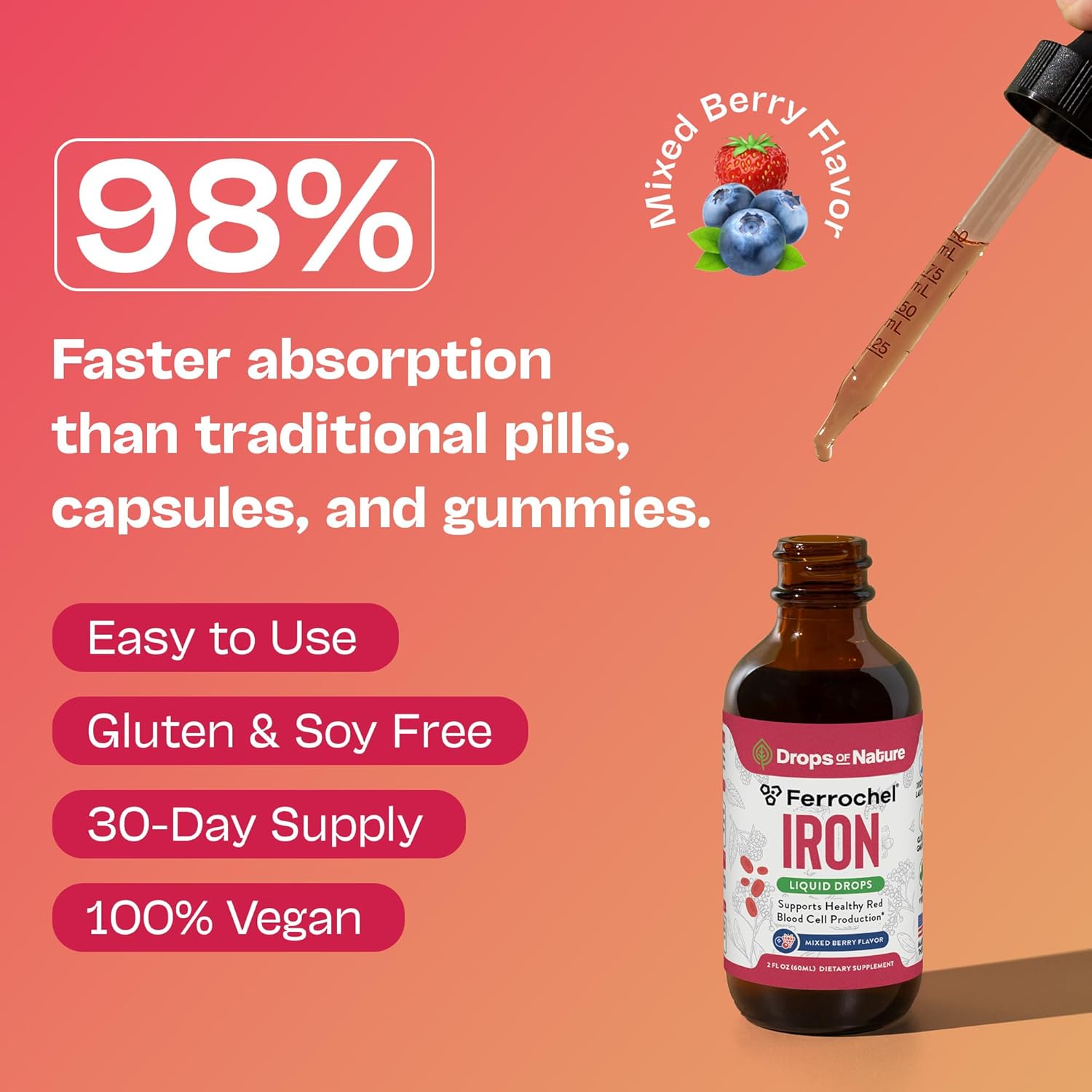 Delicious & Easy to Take: With a naturally sweet mixed berry flavor, these liquid iron drops are perfect for anyone who struggles with pills. The dropper makes dosing simple and precise.