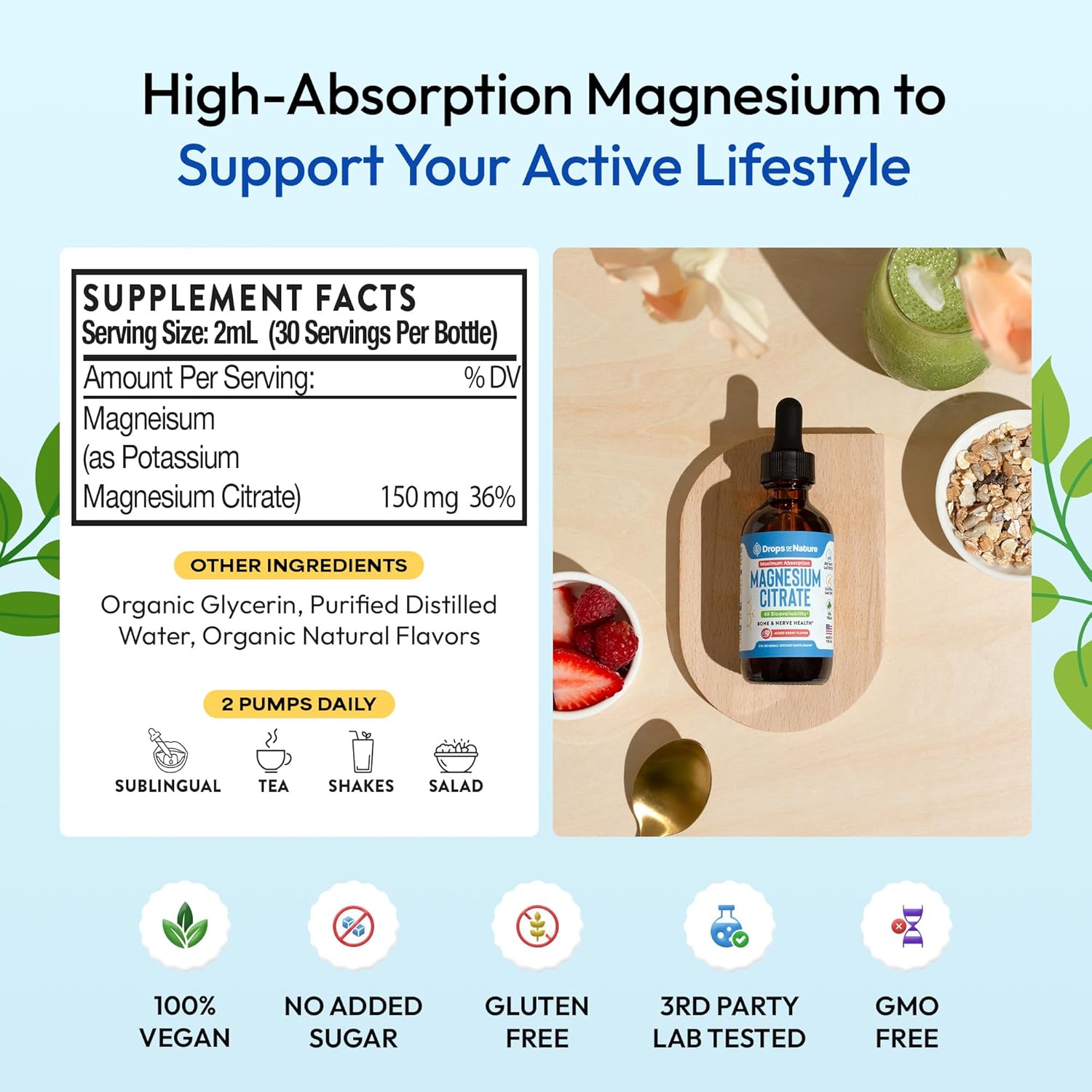 Power Up Your Day with Magnesium Power : Fuel your body and mind with our Magnesium Liquid Drops, designed to keep you energized, calm, and ready for anything. Better sleep breeds a better mood and a better mood brings a better day ahead! Packed with 145 mg of essential magnesium per serving, this vegan, non-GMO supplement is a delicious way to support your daily health routine with a burst of strawberry flavor.