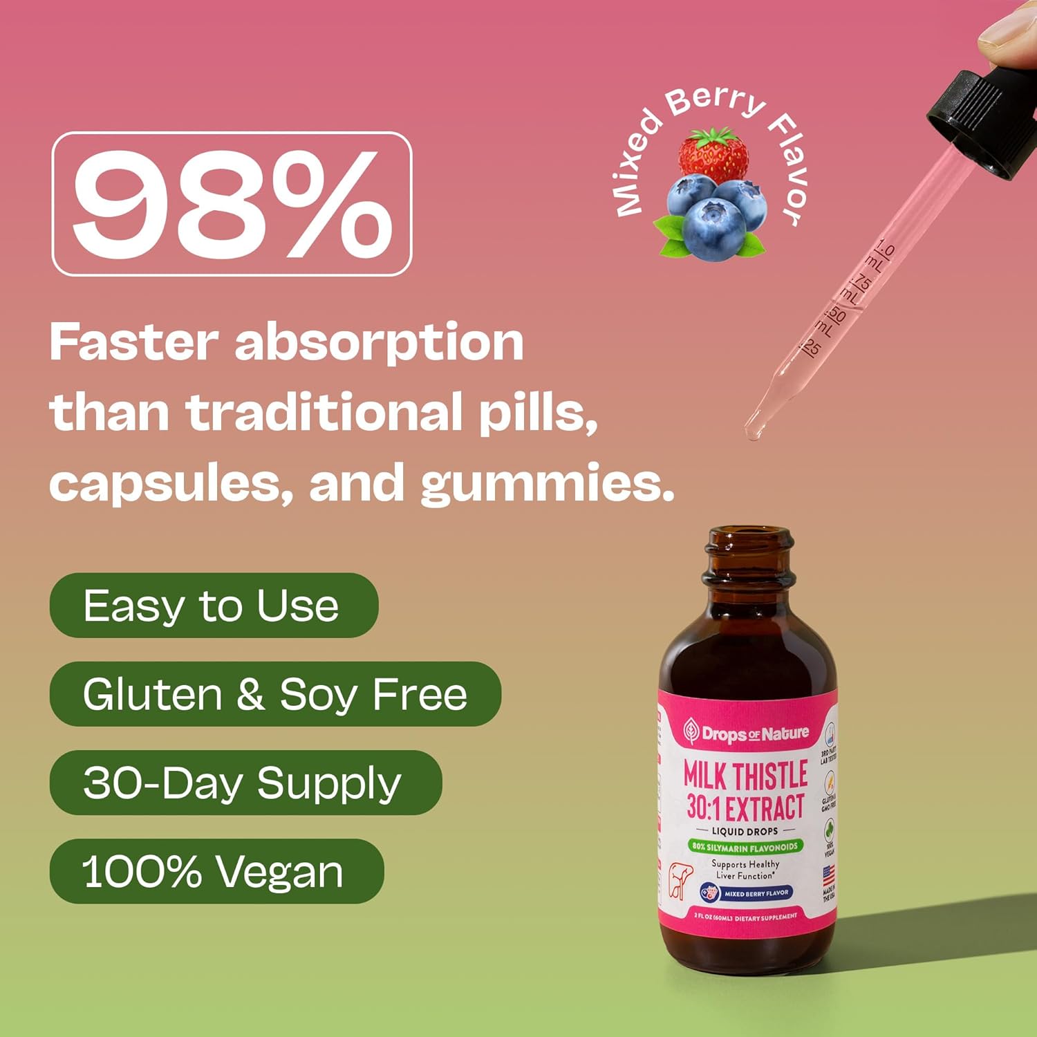 Tastes Good, Works Hard: No pills or powders - just an easy-to-use dropper and a clean mixed berry flavor. A smooth alternative to gummies or hard-to-swallow capsules.