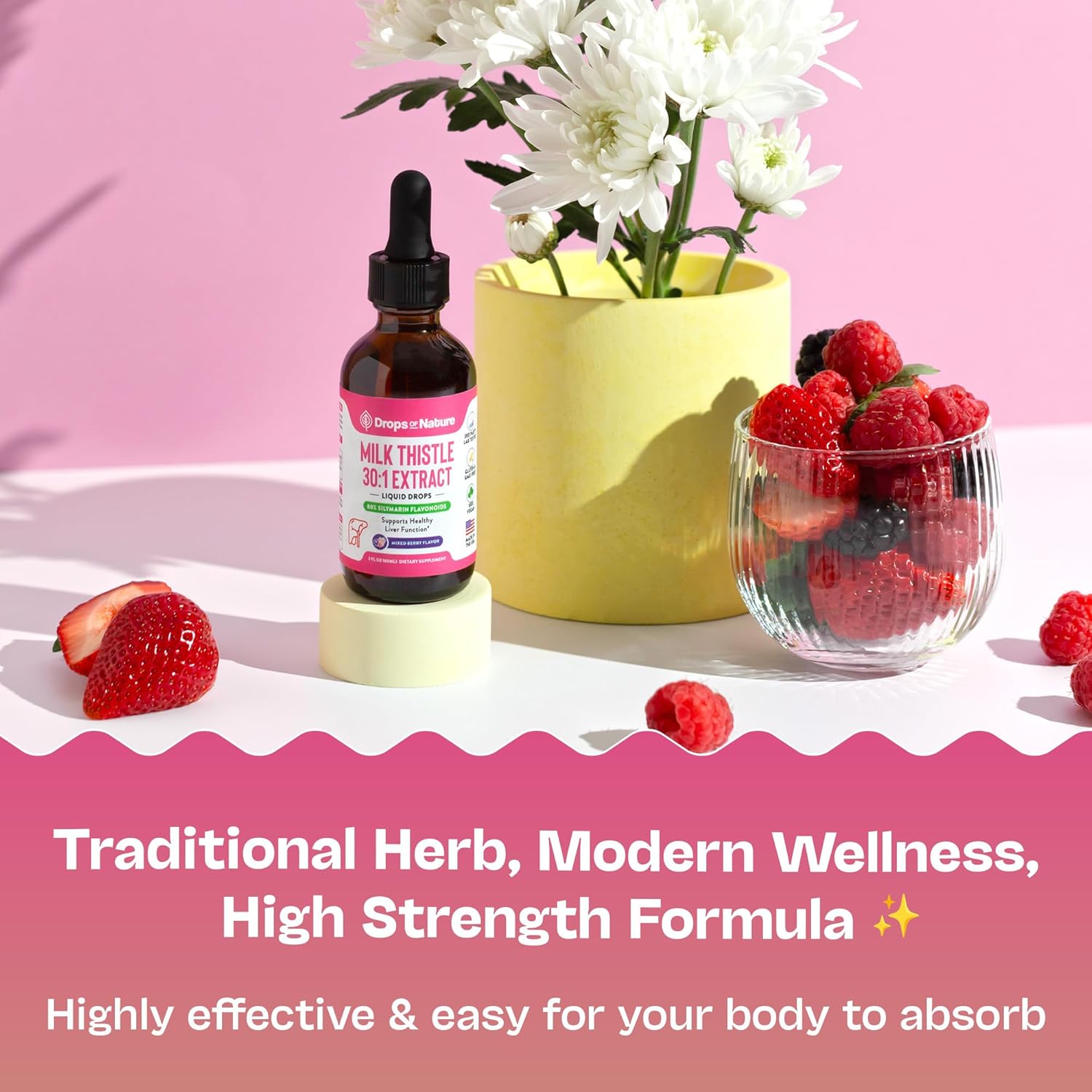 Our Milk Thistle Liquid Drops deliver concentrated herbal support rooted in centuries of traditional wellness. Rich in silymarin and designed for easy daily use, this formula offers a gentle yet effective way to support liver function, detox pathways, and digestive balance - all in a smooth mixed berry flavor.