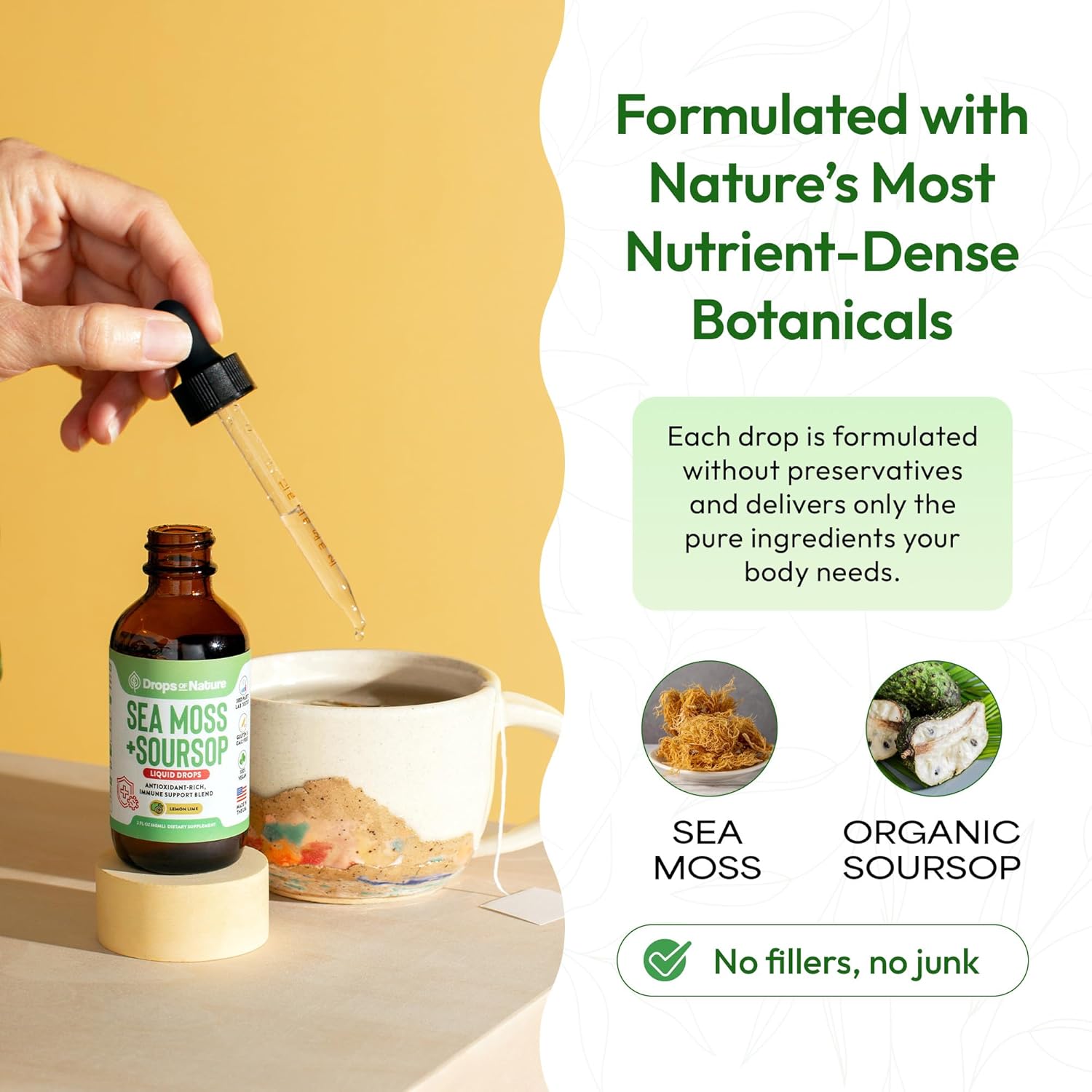 Immune Support: Fortify your body. Sea moss and soursop extract are packed with essential nutrients to bolster your immune system.