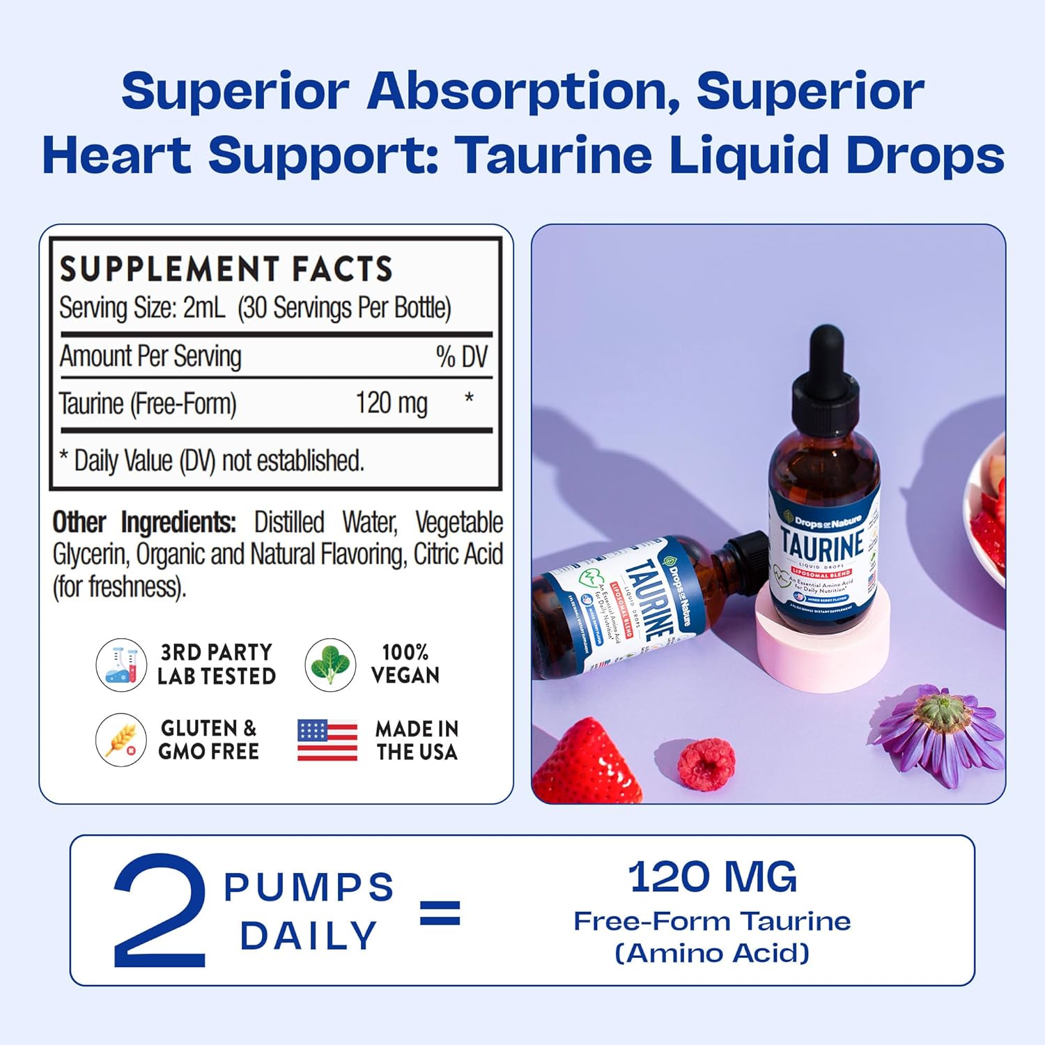 Support your heart. Sharpen your focus. Fuel your day. Add our Taurine Liquid Drops to your wellness routine and enjoy targeted support for the systems that keep you moving forward.