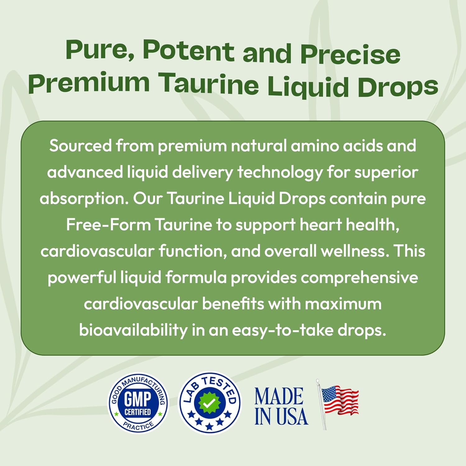 Cardiovascular Support You Can Count On: Taurine is a well-researched amino acid known to support heart and circulatory system health. It pairs well with CoQ10 to help support overall cardiovascular wellness.